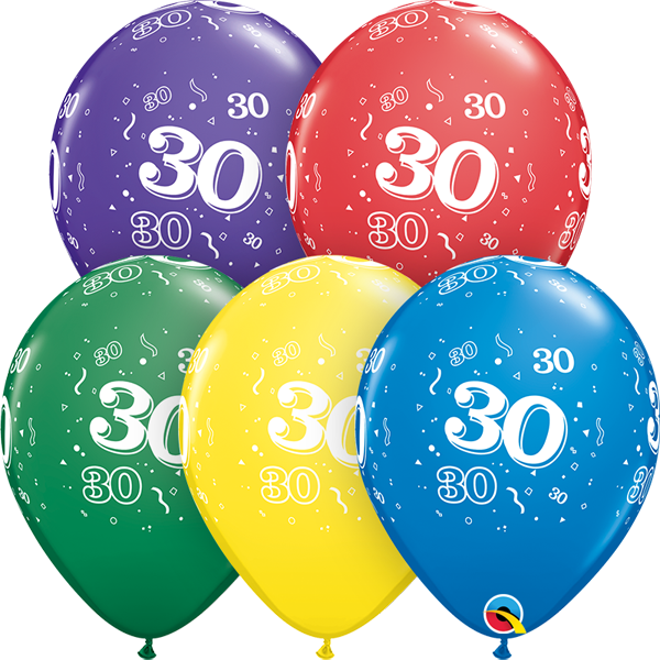 Age 30 Printed Balloon empty 5/Pkg