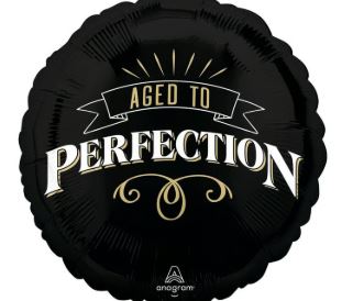 Double sided 18 inch foil balloon: "Limited Edition Happy Birthday" on one side, and "Aged to Perfection" on the other.