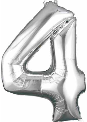 A 34 inch foil number 4 balloon is a great party decoration for Birthdays, anniversary parties, graduations and New Year's Eve Parties.  Whether they are for a milestone event or a special celebration, the mylar number balloons will make an impact. Combine the number 4 with another number in order to customize your message for other events.  They ship empty, but you can fill them with helium to float, or you can air fill them to be hung from the ceiling.  Don't forget the matching foil balloon weight.