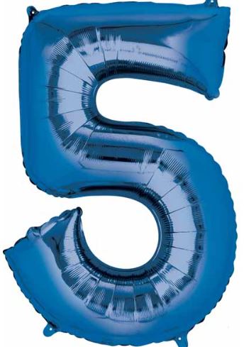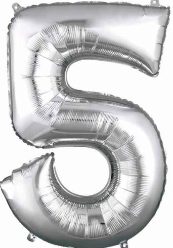 A 34 inch foil number 5 balloon is a great party decoration for Birthdays, anniversary parties, graduations and New Year's Eve Parties.  Whether they are for a milestone event, such as a 40th, 50th or 100th birthday or a special celebration, the mylar number balloons will make an huge impact.  Combine the number 5 with another number in order to customize your message for other events.  They ship empty, but you can fill them with helium to float, or you can air fill them to be hung from the ceiling.  Don't forget the matching foil balloon weight.