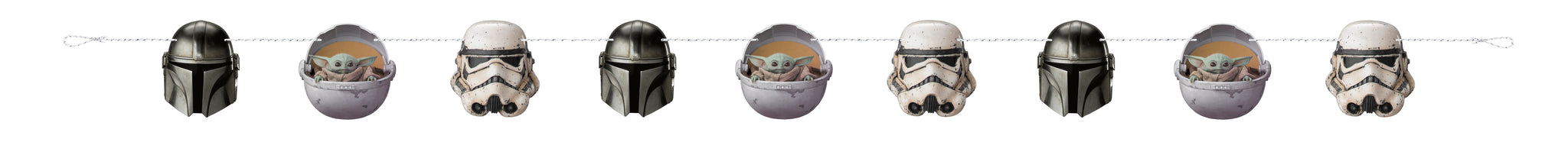 This garland measures 7 feet long and features The Child, The Mandalorian and  storm trooper.